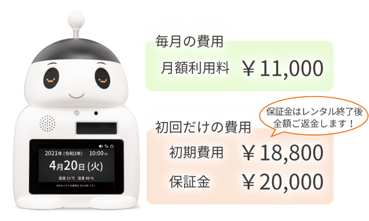 レンタル開始時に、初期費用 18,800円、保証金 20,000円が別途かかります。